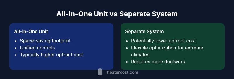 A heater and air conditioner in one unit is typically an all-in-one HVAC system, most commonly a heat pump that handles both heating and cooling from a single, integrated device. In practice, these systems come in two main flavors: air-source heat pumps (the most common all-in-one units for homes) and ducted versus ductless configurations. Ductless mini-split versions are common in retrofits and small spaces, while traditional ducted systems offer centralized distribution. The core advantage is simplicity — one equipment footprint, one set of controls, and a single service pathway. In milder climates, these systems can deliver robust year-round comfort with high efficiency; in very cold climates, performance can dip unless the unit includes auxiliary heat or a hybrid strategy. From a homeowner perspective, the appeal is clear: fewer rooms to monitor, less space taken by equipment, and the potential reduction in installation complexity. The Heater Cost team notes that the value proposition hinges on climate, insulation quality, and how well the unit is matched to the home’s heating and cooling load. For readers evaluating this option, it’s essential to understand how all-in-one units differ from conventional furnaces with separate air conditioners and whether your home’s ductwork or lack thereof will support efficient operation.