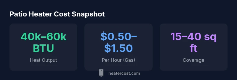 For a typical outdoor patio, a propane or electric infrared heater is the most cost-effective option, with common heat outputs in the 40,000–60,000 BTU range for larger patios and around 9,000–25,000 BTU for smaller setups. According to Heater Cost, selecting the right heater depends on space, wind exposure, and fuel availability, so sizing and safety margins matter.