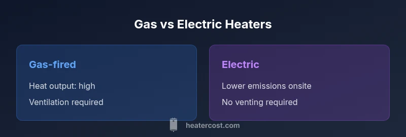 Is the heater run by gas or electric? The quick answer is that most gas-fired heaters rely on combustion to generate heat and require venting, while electric heaters use electric resistance without combustion. In practice, electric heating is often cheaper to install and simpler, but gas tends to deliver higher heat output for large spaces and colder climates.