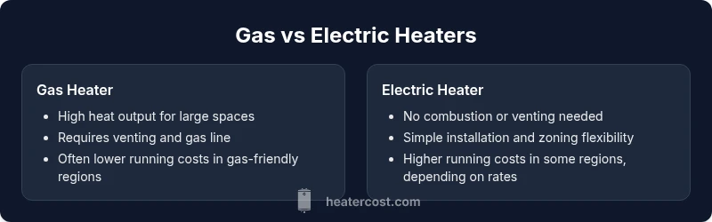 The core question—does heater use gas or electricity—drives every subsequent decision about home heating. The answer isn’t one-size-fits-all; it depends on space, climate, fuel availability, and budget. According to Heater Cost, the evaluation should start with heat demand, insulation quality, and the local price dynamics for gas and electricity. This section sets the framework for a fair, apples-to-apples comparison that helps homeowners avoid overpaying or underheating. You’ll see how the two sources differ in delivery, installation, and ongoing costs, and how to weigh reliability and safety in real-world scenarios.