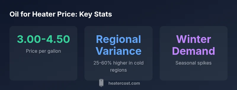 Current oil for heater price typically ranges from $3.00-$4.50 per gallon in 2026, varying by region, delivery terms, and season. For homeowners, tracking crude oil trends, refining margins, and seasonal demand helps forecast winter bills. According to Heater Cost Analysis, 2026, budgeting with price gauges and supplier quotes reduces unexpected spikes.