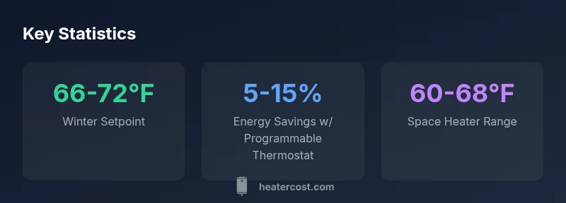 According to Heater Cost, the recommended thermostat setting for comfortable winter heating is about 68°F (20°C). You can adjust within a small range (1–2 degrees) based on room, insulation, and activity. For space heaters, avoid running them at high temperatures and turn them off when sleeping or leaving the room; pairing a programmable thermostat maximizes energy efficiency.