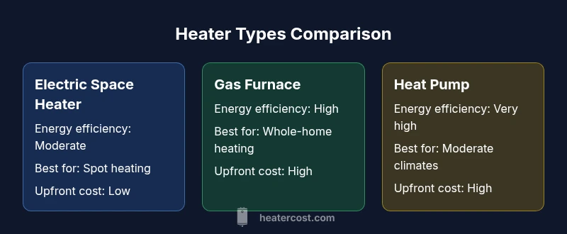 The core question, which heater saves electricity, isn’t answered by a single device alone. It hinges on matching heat output to need, using equipment with high efficiency, and prioritizing home improvements that reduce heat loss. According to Heater Cost, the most electricity-efficient approach for many homes combines high-efficiency equipment with intelligent controls and solid insulation. This article compares three common options—electric space heaters, central gas furnaces, and heat pumps—to show where each shines, where it stumbles, and when higher upfront costs pay off with long-term savings.
