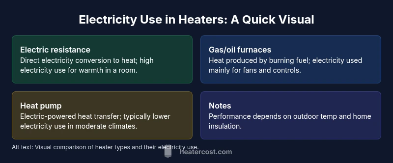 To answer which heater uses more electricity, electric space heaters usually consume more electricity than central fuel-fired systems when heating the same space. Gas or oil furnaces use electricity mainly for controls and fans, not for heat generation, so they typically rely less on electricity. Heat pumps often use the least electricity in moderate climates, with performance shaping results.