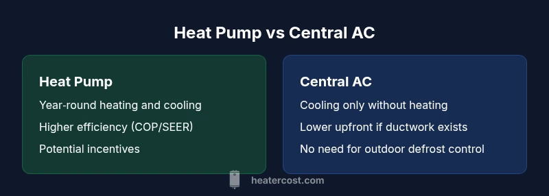 The central question in this comparison is why are heat pumps better than ac, and the answer hinges on efficiency, year‑round comfort, and long‑term value. Heat pumps move heat rather than generate it, an approach that typically uses less energy to achieve the same level of warmth in winter and cooling in summer. This fundamental difference drives the economics of ownership and shapes how homeowners experience climate control. According to Heater Cost, the one‑system model can reduce the number of devices installed, minimize space usage, and simplify maintenance, all of which contribute to lower lifetime costs when correctly sized and installed. The Heater Cost team emphasizes that, in many homes, the savings compound over time as bills decline while temperatures remain steady, especially during shoulder seasons when weather swings are common but demand is moderate. Beyond the economics, heat pumps offer environmental benefits by reducing fossil‑fuel use and allowing a shift toward electricity‑powered solutions that can be paired with renewables. Yet the fit is not universal: climate, home insulation, duct design, and electrical service all influence performance. In this guide we will examine the physics, the practical implications, and real‑world outcomes to help you decide if the claim why are heat pumps better than ac is true for your residence. Expect clear takeaways, not hype, built on system design, measured performance, and owner experiences.