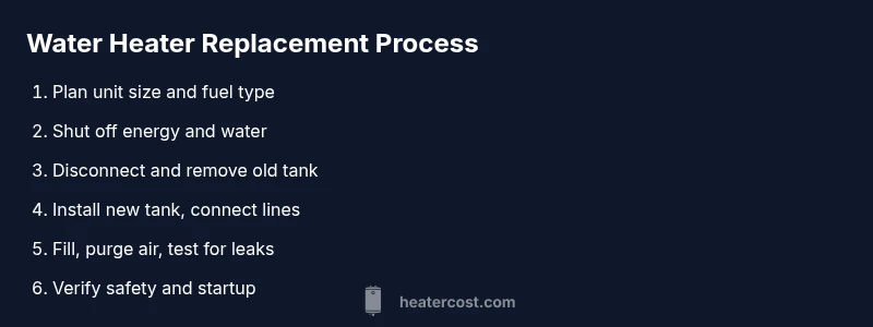 Below is a high-level map of the typical process, to help you decide whether to tackle it yourself or hire a pro. 1) Plan unit size and fuel type; 2) prepare location and shutoffs; 3) safely disconnect and remove the old tank; 4) install the new tank, including connections and venting; 5) fill, purge air, and test for leaks; 6) verify leaks and safety; 7) document the installation for permits and warranty. This overview emphasizes safety and code compliance at every step, rather than giving exhaustive technical instructions.
