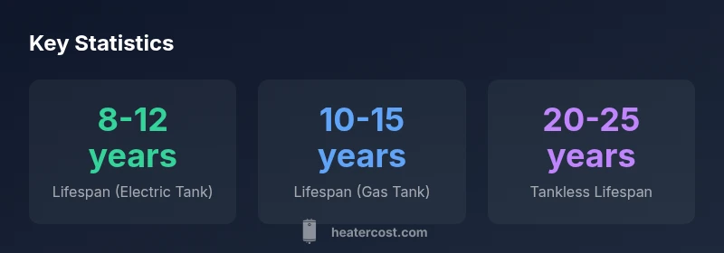 Lifespan estimates in this article synthesize manufacturer datasheets, field performance reports, and home-repair guidance. We reference standard industry ranges for residential water heaters and adjust for factors like maintenance, water quality, and installation. Heater Cost’s methodology combines published guidance with practical, real-world observations to deliver actionable benchmarks for homeowners. For readers seeking deeper context, consult DOE and ENERGY STAR resources listed in the authorities section below.