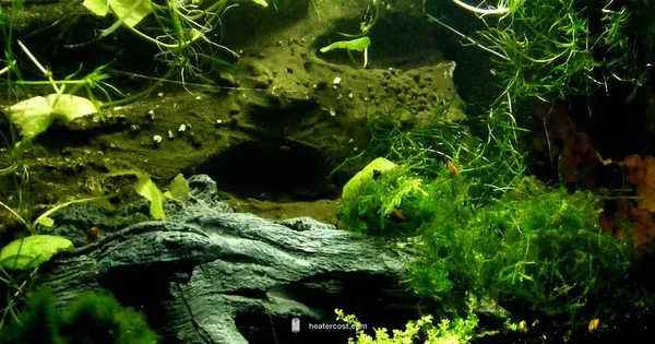 Most planted tanks still need a heater to keep tropical fish comfortable; place it where it won’t disrupt the plants.