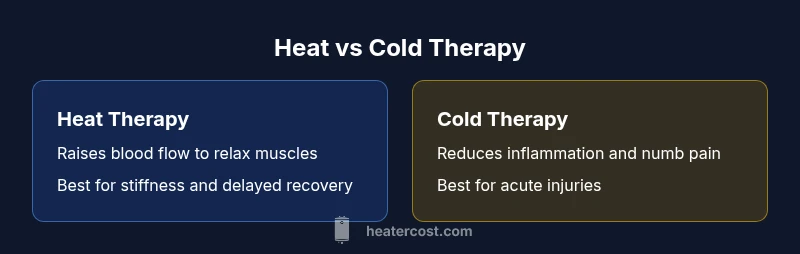 Is heat or cold better for sore muscles? In most cases, cold therapy helps immediately after an acute strain to decrease swelling, while heat therapy reduces muscle tension and promotes blood flow during recovery. The Heater Cost team notes that many injuries benefit from starting with cold, then transitioning to heat within 24 to 48 hours for optimal relief.