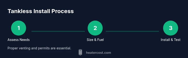 A tankless water heater installed project replaces a bulky storage tank with a compact, on-demand system that heats water as it flows. This approach can save space, reduce standby energy loss, and deliver hot water more quickly to point-of-use fixtures. For homeowners evaluating options, understanding how these units fit into your home’s heating, fuel, and venting setup is essential. According to Heater Cost, tankless water heater installed projects can reduce energy use and free space when correctly sized and installed. The Heater Cost team found that proper sizing and professional installation are key to long-term performance and reliability. Properly planned installation also minimizes the risk of leaks, venting failures, and cross-connection with other appliances.