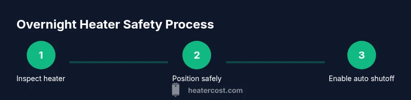 Using a heater overnight can keep a home warm when temperatures drop, but it also increases fire and carbon monoxide risks. According to Heater Cost, understanding overnight use helps homeowners balance comfort with safety and energy use. The core idea is to maintain a safe zone around the heater, ensure proper ventilation for fuel-burning units, and have working detectors ready. Electric space heaters are generally safer for overnight use when they have automatic shutoff, tip-over switches, and thermally protected elements. Always check that the unit is in good condition, placed on a nonflammable surface, and plugged into a dedicated outlet. Keep pets and children away, and remove any clothing or bedding that might obstruct air flow.
