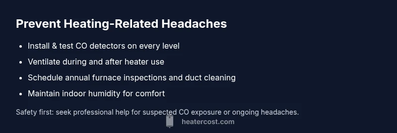 Can heater cause headache? Yes, in some homes headaches at home can be linked to heating equipment, especially with poor ventilation or combustion byproducts. According to Heater Cost, carbon monoxide exposure and indoor air quality issues are common risks in homes with older furnaces or gas heaters. If you’re experiencing headaches, start with safety checks and testing, then seek professional evaluation.