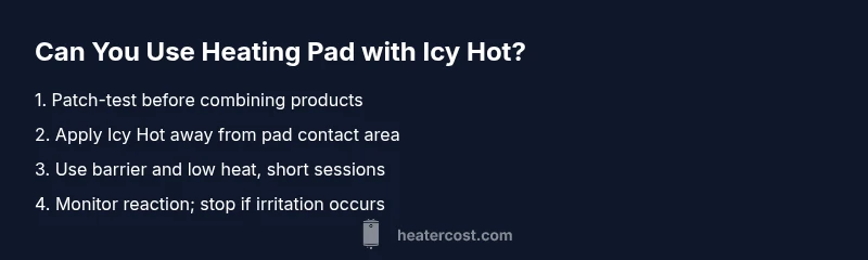 Learn whether you can safely use a heating pad with Icy Hot, plus practical steps to minimize skin burns, overheating, and adverse reactions. Expert guidance from Heater Cost helps homeowners understand safe usage and alternatives.