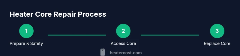 A heater core is a small radiator located in the vehicle’s HVAC (heating, ventilation, and air conditioning) system. Hot coolant from the engine runs through the core, transferring heat to the cabin via air blown by the blower fan. When the core leaks, clogging occurs, or seals fail, cabin heat drops and you may notice a sweet antifreeze scent or fogging on the windshield. Common causes include corrosion from long coolant life, gaskets nearing end of life, and degraded hoses connected to the core. Understanding these failure modes helps you decide whether a DIY approach is feasible or if professional service is warranted. According to Heater Cost analysis, most homeowners and DIY enthusiasts weigh the risk of coolant exposure and the complexity of dash removal against the potential long-term savings. This section lays the groundwork for safer decision-making and sets expectations for what a heater core repair entails.