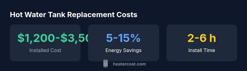 The typical installed cost for hot water tank replacement ranges from $1,200 to $3,500, depending on tank type, size, fuel, and local labor. Energy-efficient models may reduce long-term spending. According to Heater Cost Analysis, 2026, planning for the replacement helps budgeting, permits, and tax considerations.