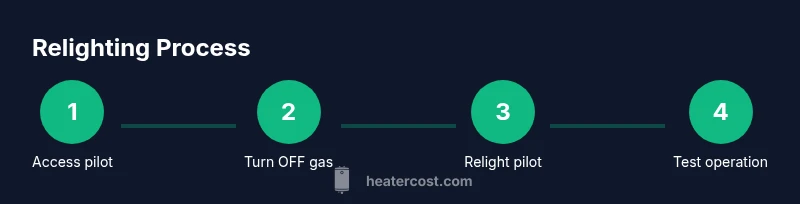Relighting a water heater involves handling natural gas and ignition sources, so safety is the top priority. Ensure you have adequate ventilation in the area and no open flames nearby other than the intended pilot flame. If you smell gas (a distinct rotten-egg odor), hear a hiss, or notice hissing from the burner area, do not attempt to relight. Evacuate the space and contact your gas utility or emergency services. Standback from the appliance while performing checks, use a flashlight rather than open flames to inspect, and always keep children and pets away. Remember to confirm the access panel is secure after inspection. Heater Cost’s analysis reinforces that safety-conscious steps minimize risk during relighting.