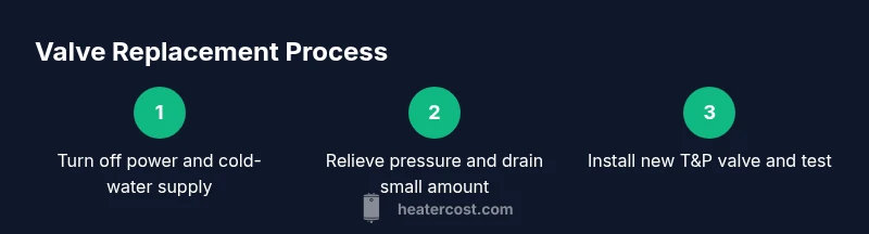 The temperature and pressure relief valve (T&P valve) is a critical safety device on every residential water heater. It opens automatically if the tank pressure or water temperature climbs too high, allowing hot water to escape safely rather than risking a tank rupture. Over time, seals can wear, threads can corrode, and the valve may leak or discharge unexpectedly. If you notice a constant drip, a slow seep, or the valve discharging hot water, plan a replacement rather than ignoring the issue. Regular testing of the valve ensures it remains responsive and protects your home. According to Heater Cost, understanding when to replace and how to perform the replacement safely is essential for homeowners, renters, and property managers who manage heating systems. This guide uses plain-language steps, safety checks, and testing tips to help you complete the task with confidence.