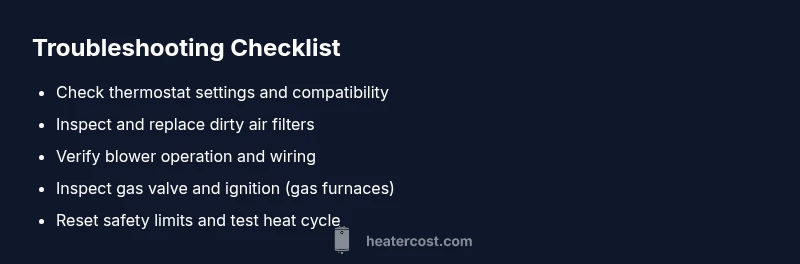 When a heating system suddenly emits cold air, it usually means the system isn’t delivering warm air from the heat source. Common culprits include a misread thermostat, a tripped safety switch, a dirty air filter, or a blower that isn’t circulating air. In some homes, a faulty gas valve or ignition sequence can prevent flame from forming, resulting in cold air despite a warm thermostat reading. The Heater Cost team emphasizes that many cold-air problems are caused by simple, addressable issues rather than a full system failure. Regular maintenance reduces the likelihood of these failures and helps you identify problems before they become emergencies.
