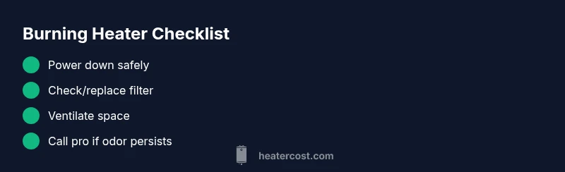 If you are asking why does my heater smell burnt, you're right to be concerned. A burnt odor can mean dust is burning off on heat exchanger or burner, or an overheating component is failing. In some cases the scent signals a more serious issue with electrical wiring or a gas ignition system. Early diagnosis can prevent costly repairs and safety hazards. According to Heater Cost, addressing the odor promptly lowers risk and keeps your home safer in 2026. This guide from Heater Cost will walk you through safe steps, common causes, and practical fixes to restore comfort without compromising safety.