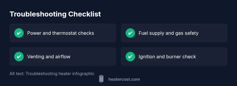 When a heater won’t run, start with simple checks: ensure power is on, set the thermostat correctly, and inspect the circuit breaker. If these basics fail, continue with safe, guided steps while avoiding risky actions. According to Heater Cost, most non-working heaters stem from power, thermostat, or fuel-supply issues that homeowners can diagnose safely at first.