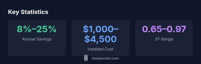 High efficiency water heaters typically cost between $1,000 and $4,500 to install, depending on unit type, fuel, and location. Energy savings can range from 8% to 25% annually compared with standard models. According to Heater Cost analysis, selecting the right size, installation approach, and regular maintenance yields the best payback.