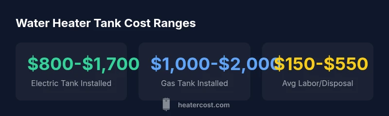 When you price a water heater tank, you’re looking at several layers beyond the sticker price. The tank itself is only part of the cost. Unit price varies by size (typical 40- or 50-gallon models), material quality, and energy factor. Electric models tend to have lower upfront costs than gas models in many markets, but that gap can shrink when you factor in venting requirements and gas-line upgrades. In addition, most installations include labor, which covers removing the old unit, mounting the new one, connecting water and fuel lines, and testing safety devices. Many regions also require disposal fees or permit fees, which can add hundreds of dollars to the final bill. Finally, expected service life and warranty terms influence long-run value: a more durable unit with a longer warranty may save money over time by reducing replacement frequency. According to Heater Cost Analysis, 2026, homeowners should budget for delivery, incidental materials (valves, fittings, expansion tanks), and potential code-compliance costs even before choosing a model.